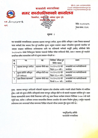 उद्यम विकास सहजकर्ता, सहायक कम्प्युटर अपरेटर र सूचना प्रविधि अधिकृतको लिखित परीक्षा हुने सम्बन्धी सूचना !