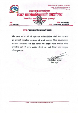 » सार्वजनिक बिदा सम्बन्धी सूचना !