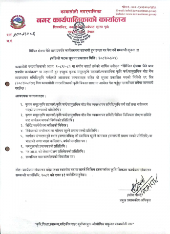 सिंचित क्षेत्रमा चैते धान प्रवर्धन कार्यक्रममा सहभागी हुन इच्छा पत्र पेश गर्ने सम्बन्धी सूचना !