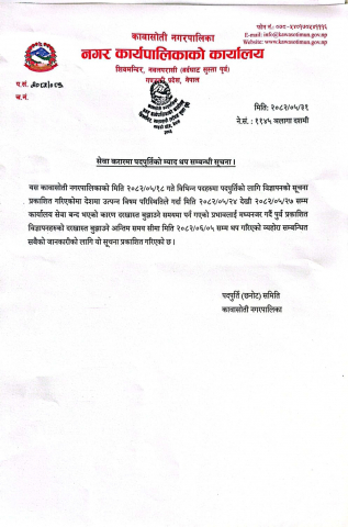 सेवा करारमा पदपूर्तिको म्याद थप सम्बन्धी सूचना !