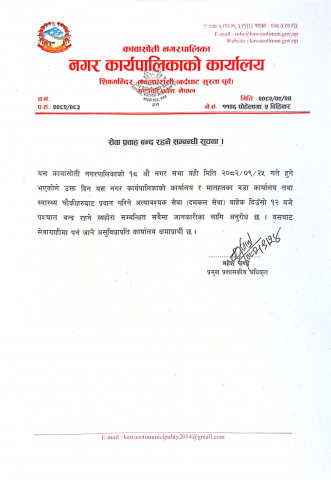 सेवा प्रवाह बन्द रहने सम्बन्धी सूचना !