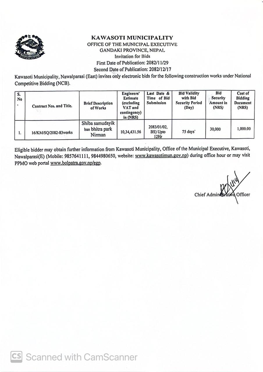 सार्वजनिक खरिद/बोलपत्र सूचना