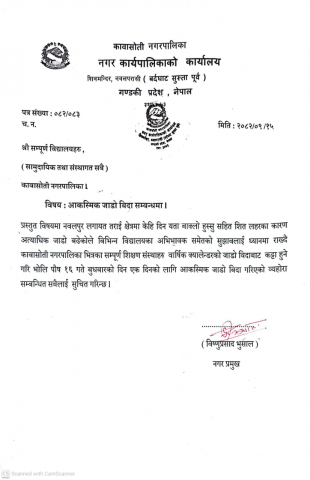 आकस्मिक जाडो बिना सम्बन्धी सूचना !