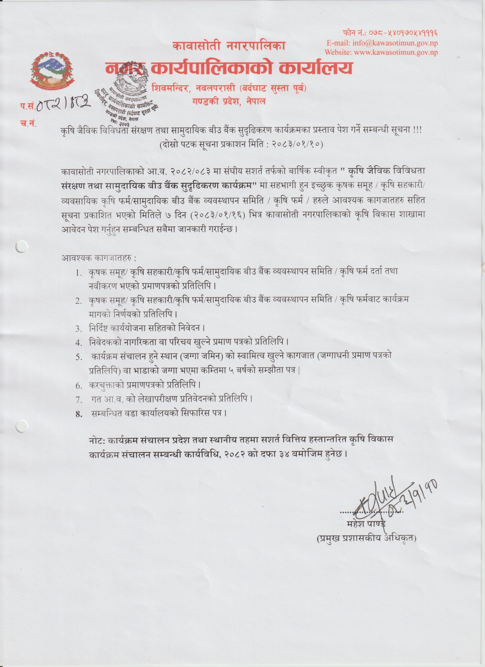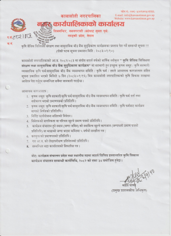 » कृषि जैविक विविधता संरक्षण तथा सामुदायिक बीउ बैँक सुदृढिकरण कार्यक्रमको प्रस्ताव पेश गर्ने सम्बन्धी सूचना ।