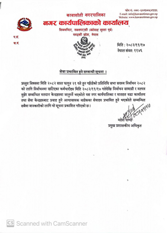 सेवा प्रभावित हुने सम्बन्धी सूचना ।