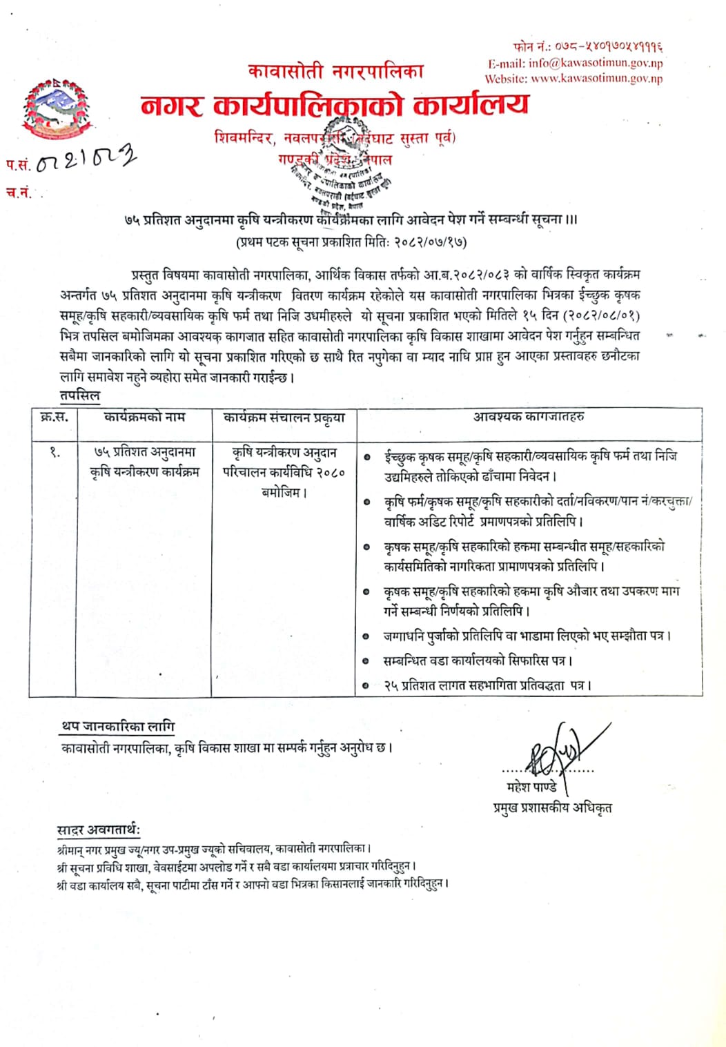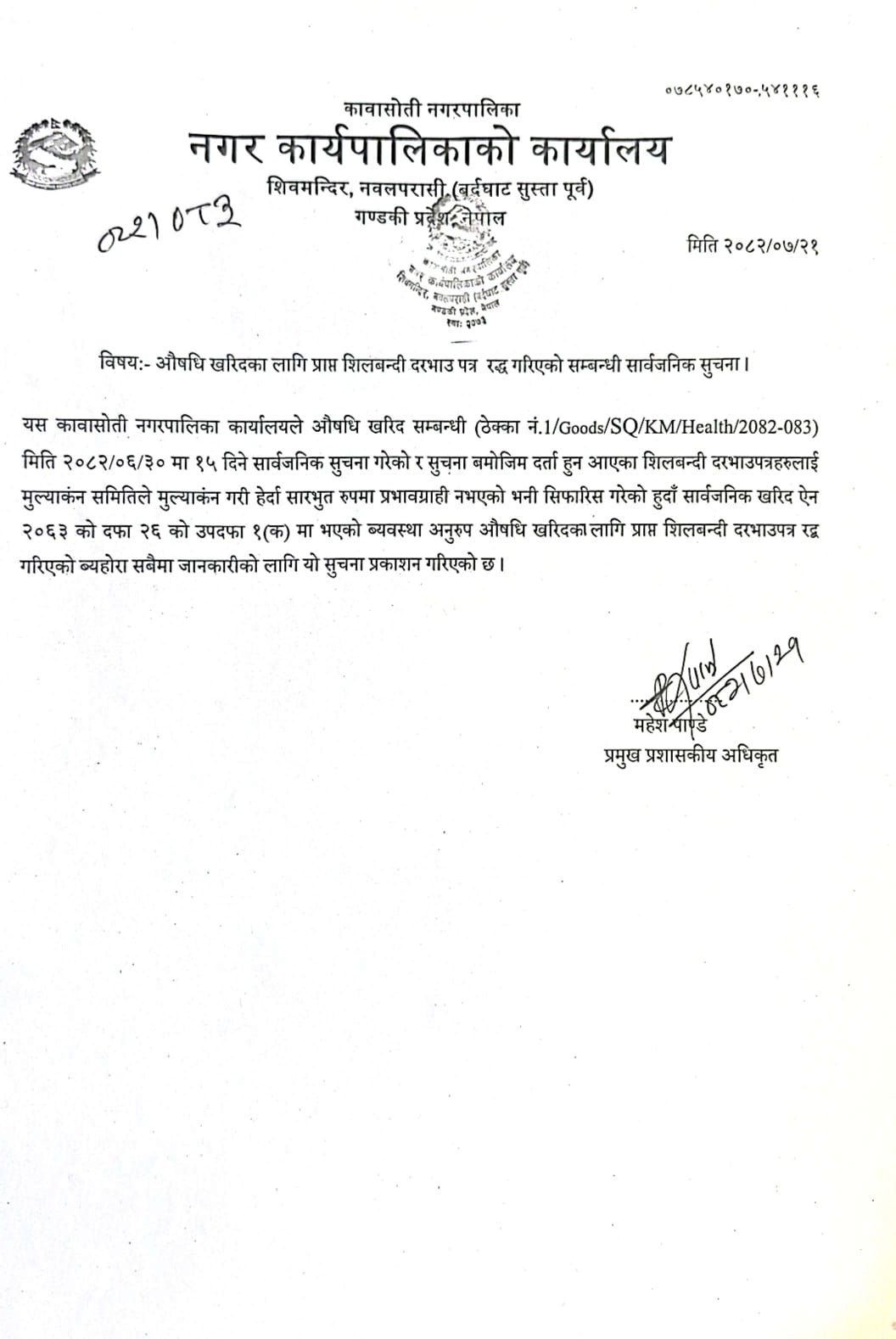 नगर प्रमुख , कावासोती नगरपालिका