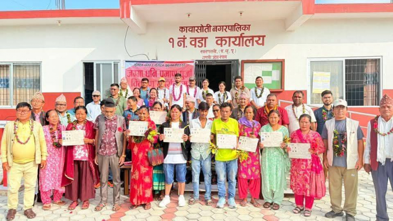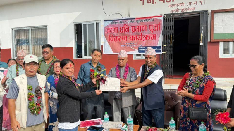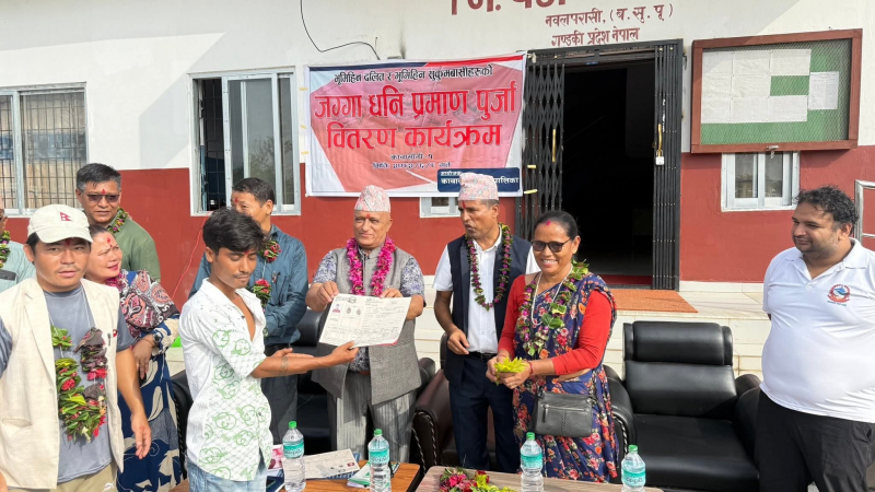 कावासोती नगरपालिका वडा नं.१ मा पहिलो चरण भूमिहीन दलित तथा भूमिहीन सुकुम्बासीहरुलाई जग्गा धनी प्रमाण-पुर्जा वितरण गर्दै-गर्दाको झलकहरु ~~~