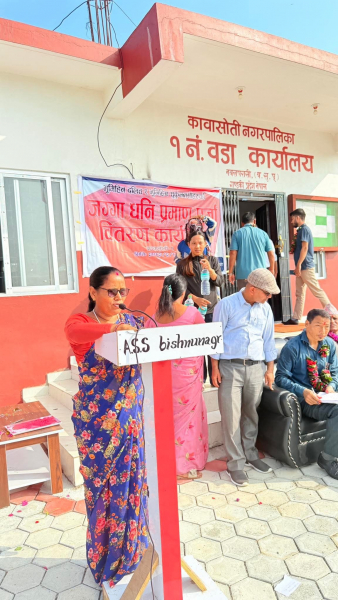 » कावासोती नगरपालिका वडा नं.१ मा पहिलो चरण भूमिहीन दलित तथा भूमिहीन सुकुम्बासीहरुलाई जग्गा धनी प्रमाण-पुर्जा वितरण गर्दै-गर्दाको झलकहरु ~~~