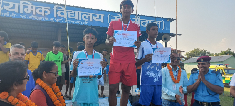 Home » नगर खेलकुद विकास समितिका अध्यक्ष श्री ध्रुब खनालज्यूको अध्यक्षता, नगर उपप्रमुख, श्री फूल कुमारी थनेतज्यूको प्रमुख अतिथ्यता तथा प्र.प्र.अ. श्री महेश पाण्डेज्यूको विशेष आतिथ्यतामा कावासोती नगर स्तरीय आधारभूत तहको खेलकुद प्रतियोगिताको उद्घाटनका झलकहरु :